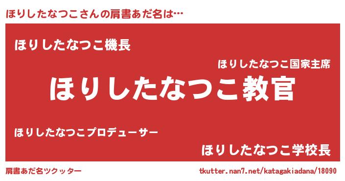 | 男性向けラノベタイトル風あだ名 | 『この素晴らしい世界にほりしたなつこを!』 |