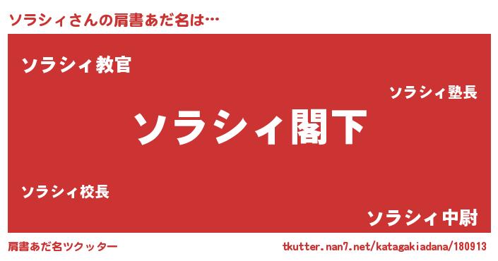 | 男性向けラノベタイトル風あだ名 | 『Re:ソラシィから始める異世界生活』 |