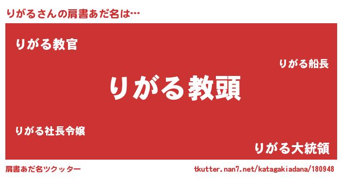 | 意味不明あだ名 | 『永久保存りがる』『りがるフォーエバー』 |