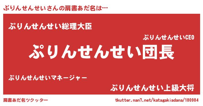 | 意味不明あだ名 | 『とにかく怪しいぷりんせんせい』 |