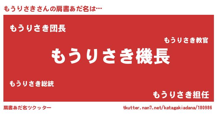 | 意味不明あだ名 | 『とにかく怪しいもうりさき』 |