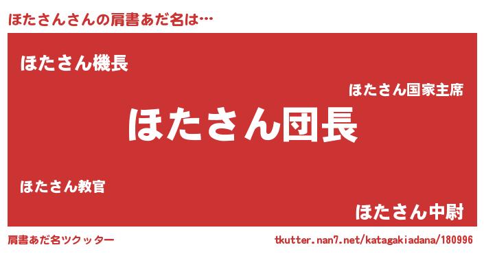 | 胡散臭い通販商品みたいなあだ名 | 『信頼と実績のサプリメント…その名も「ほたさん」』 |