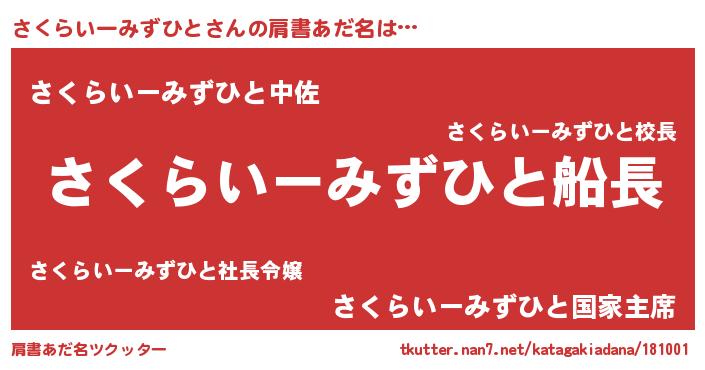 | 女子向けラノベタイトル風あだ名 | 『シンデレラさくらいーみずひと家の靴箱館』 |