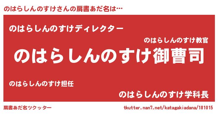 | ヒーロー風カッコイイあだ名 | 『スーパーノハラシンノスケ』 |