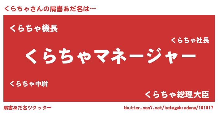 | 恥ずかしいあだ名 | 『くらっちょ』『プリティーくらちゃ』 |