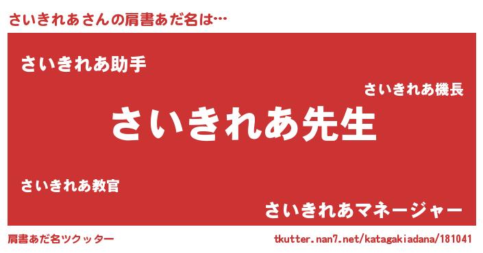 | 男性向けラノベタイトル風あだ名 | 『誰もが恐れるあのさいきれあが、ぼくの専属メイドになるようです。』 |