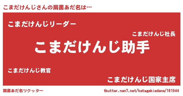 | 男性向けラノベタイトル風あだ名 | 『ノーゲーム・ノーコマダケンジ』 |