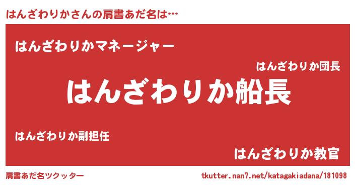| 意味不明あだ名 | 『住所不定無職はんざわりか(7歳)』 |