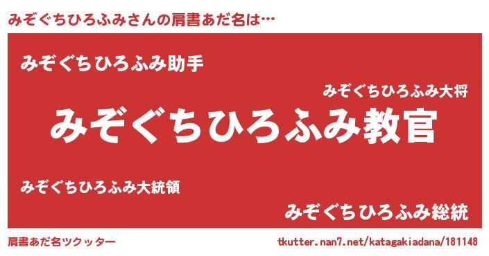 | 意味不明あだ名 | 『住所不定無職みぞぐちひろふみ(13歳)』 |