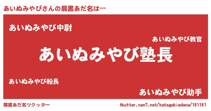 | 意味不明あだ名 | 『とにかく怪しいあいぬみやび』 |