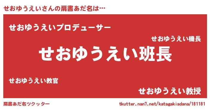 | 意味不明あだ名 | 『とにかく怪しいせおゆうえい』 |