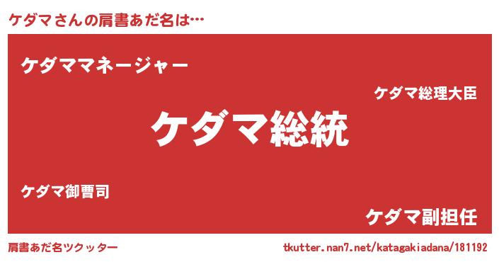 | 意味不明あだ名 | 『自称ケダマ』『永久保存ケダマ』 |