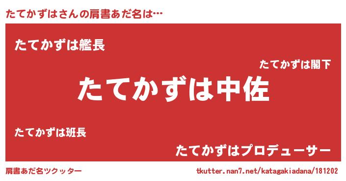 | 料理風あだ名 | 『たてかずはごはん』 |