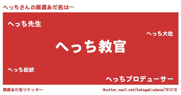 | ヘコむあだ名 | 『へっち(笑)』『へっお』『なまこ酢』 |