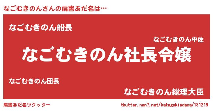 | 男性向けラノベタイトル風あだ名 | 『なごむきのんの憂鬱』 |