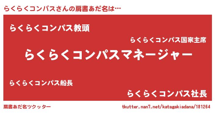 | 男性向けラノベタイトル風あだ名 | 『はたらくらくらくコンパスさま!』 |