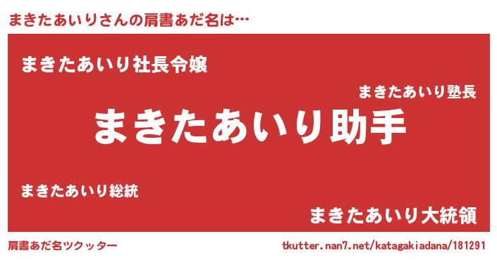 | 女子向けラノベタイトル風あだ名 | 『まきたあいり恋絵巻』 |