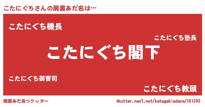 | 男性向けラノベタイトル風あだ名 | 『Re:こたにぐちから始める異世界生活』 |