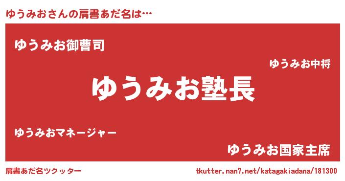 | 意味不明あだ名 | 『とにかく怪しいゆうみお』 |