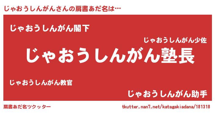 | 欧米人風あだ名 | 『ウサインじゃおうしんがん』 |