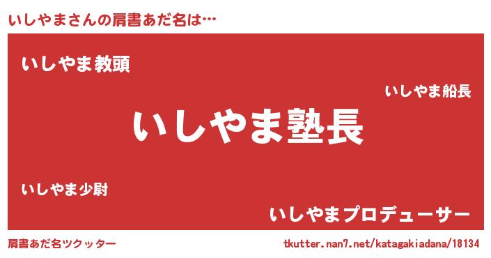| 意味不明あだ名 | 『とにかく怪しいいしやま』 |