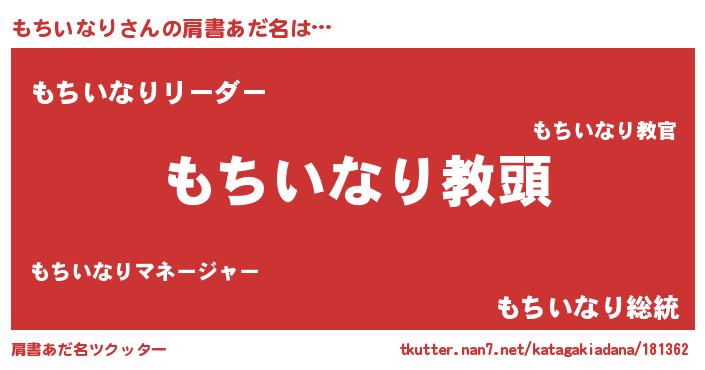 | 意味不明あだ名 | 『永久保存もちいなり』『自称もちいなり』 |
