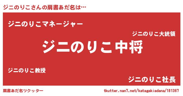 | 男性向けラノベタイトル風あだ名 | 『ジニのりこ~年齢イコール彼女いない歴の魔法使い~』 |
