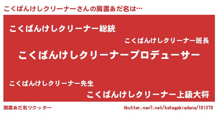 | ヒーロー風カッコイイあだ名 | 『超時空戦士コクバンケシクリーナー』 |