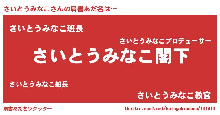 | 意味不明あだ名 | 『自称さいとうみなこ』 |