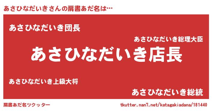 | ヒーロー風カッコイイあだ名 | 『スーパーアサヒナダイキ』 |