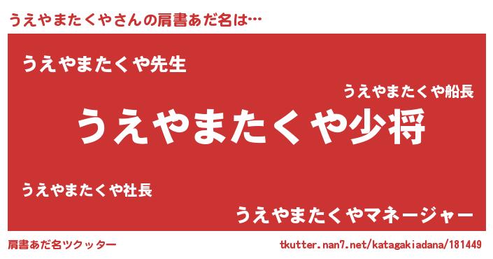 | 男性向けラノベタイトル風あだ名 | 『転生したらうえやまたくやだった件』 |