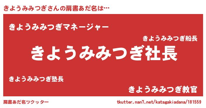 | 男性向けラノベタイトル風あだ名 | 『キヨウミミツギアートオンライン』 |