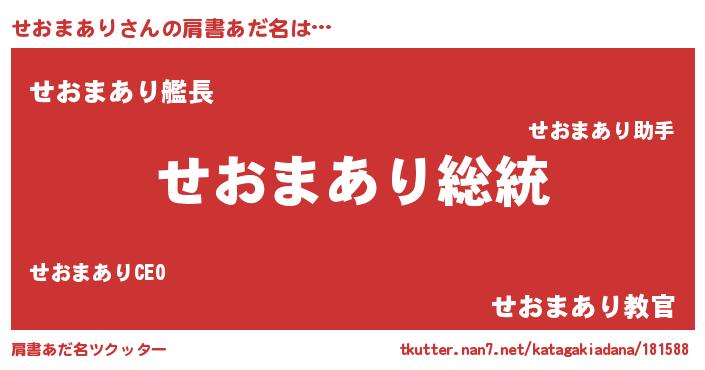 | 男性向けラノベタイトル風あだ名 | 『Re:せおまありから始める異世界生活』 |