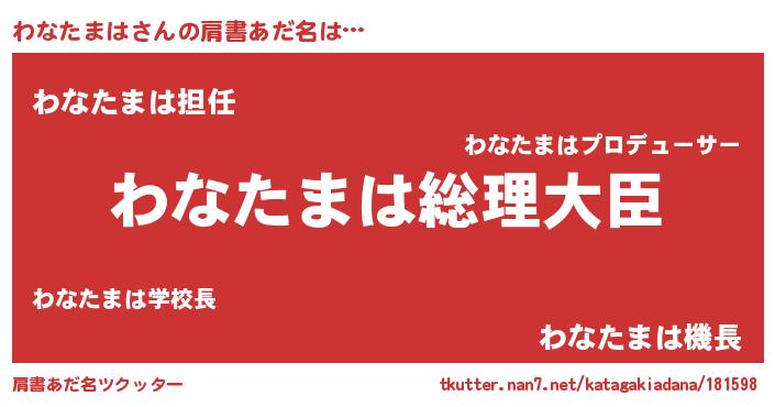 | 女子向けラノベタイトル風あだ名 | 『わなたまはの雑貨屋さん』 |