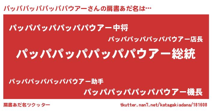 | 男性向けラノベタイトル風あだ名 | 『Re:パッパパッパパッパパウアーから始める異世界生活』 |