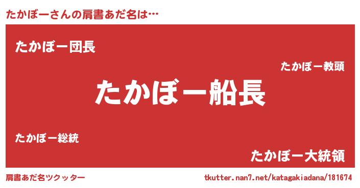 | 胡散臭い通販商品みたいなあだ名 | 『全米が絶賛したサプリメント…その名も「たかぼー」』 |