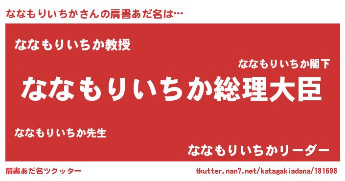 | 男性向けラノベタイトル風あだ名 | 『やはりななもりいちかの青春ラブコメはまちがっている 』 |