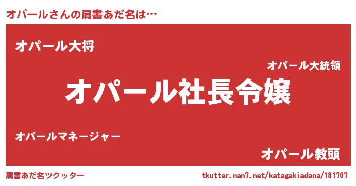 | ヘコむあだ名 | 『オパもー』『オパール(遠い目)』 |