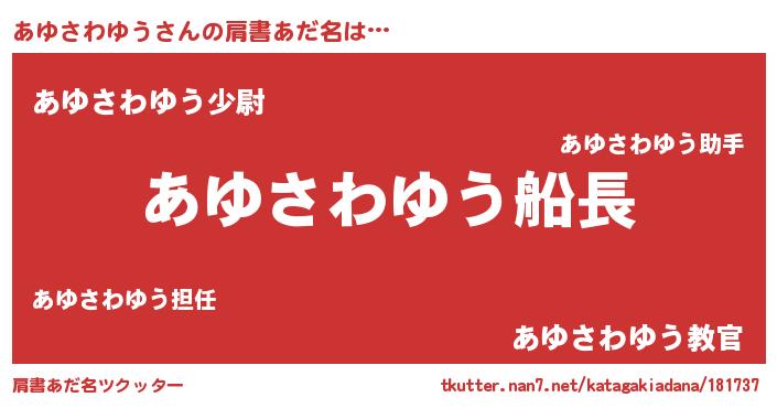 | 欧米人風あだ名 | 『あゆさわゆう・ステッグマイヤー』 |