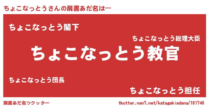 | 男性向けラノベタイトル風あだ名 | 『この素晴らしい世界にちょこなっとうを!』 |