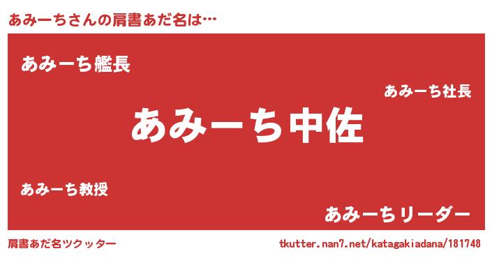 | 男性向けラノベタイトル風あだ名 | 『あみーち~年齢イコール彼女いない歴の魔法使い~』 |