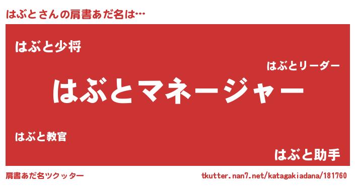 | 欧米人風あだ名 | 『アンジェラ・はぶと』『ダニエルはぶと』 |