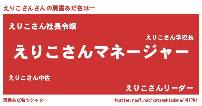| 欧米人風あだ名 | 『アンジェラ・えりこさん』 |