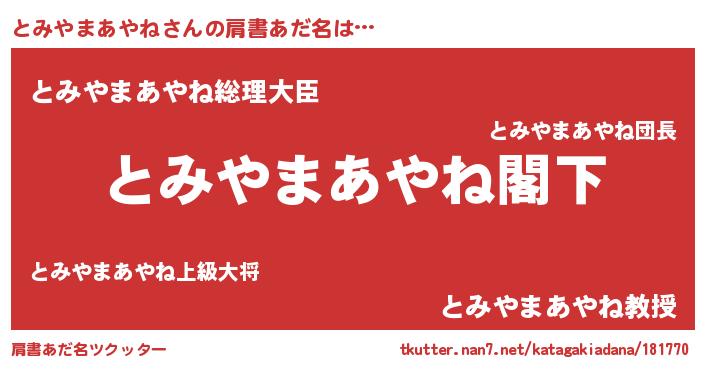 | 女子向けラノベタイトル風あだ名 | 『とみやまあやねなんてお断りですっ。』 |
