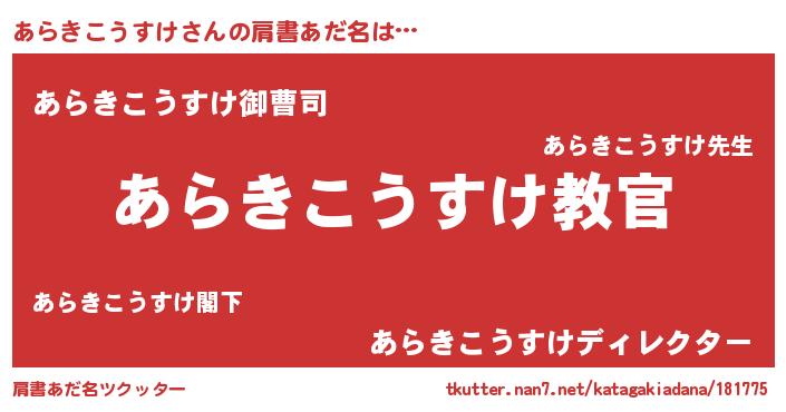 | 意味不明あだ名 | 『住所不定無職あらきこうすけ(85歳)』 |