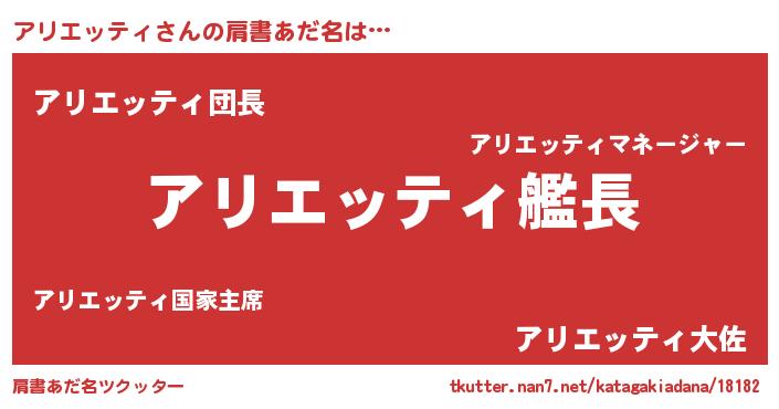 | ファンタジー風あだ名 | 『カークアリラー』『ファントムアリス』 |