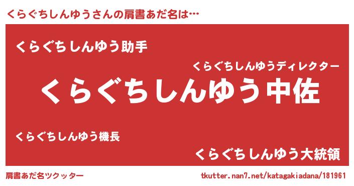 | 男性向けラノベタイトル風あだ名 | 『クラグチシンユウスレイヤー』 |