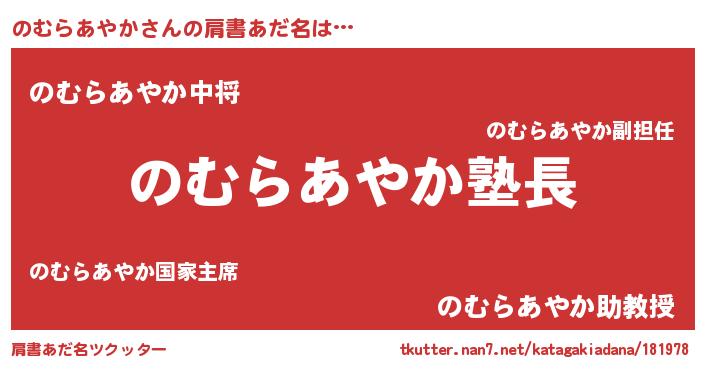 | ポケモン風あだ名 | 『ヒノムラアヤカ』『ノムキング』 |