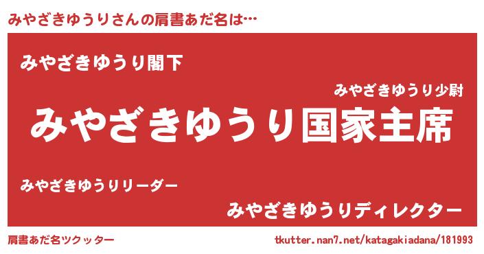 | 欧米人風あだ名 | 『みやざきゆうりクリステル』 |
