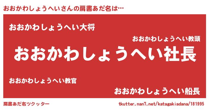 | 男性向けラノベタイトル風あだ名 | 『オオカワショウヘイアートオンライン』 |